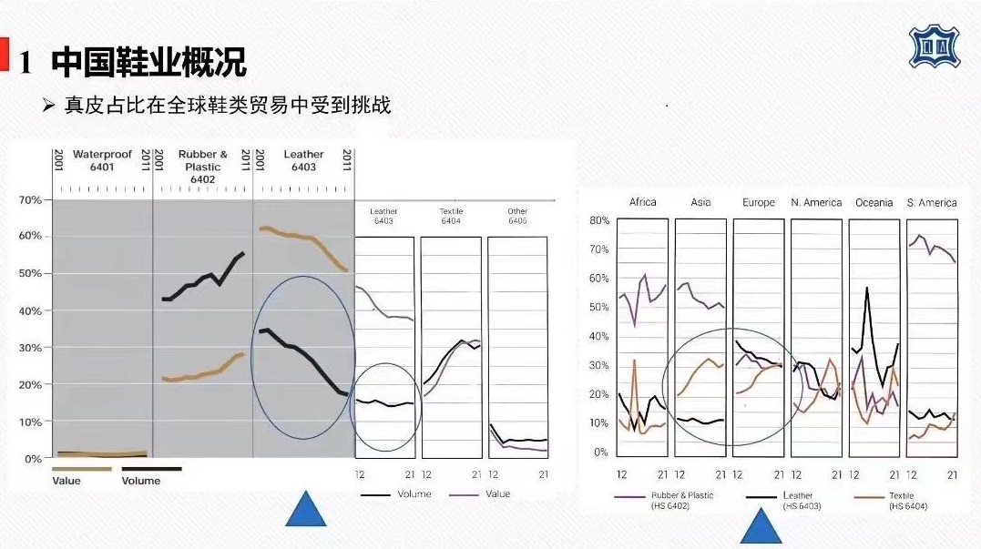 路華副秘書主要圍繞“我國鞋業(yè)概況”這一主題,從我國鞋業(yè)的全球坐標、真皮占比在全球鞋類貿(mào)易中受到挑戰(zhàn)、我國鞋產(chǎn)品的內(nèi)銷和出口市場分析以及我國鞋業(yè)的生產(chǎn)狀況等方面,詳細介紹了我國鞋業(yè)以及皮革等鞋用材料的發(fā)展現(xiàn)狀,最后對我國鞋業(yè)及鞋材的升級轉(zhuǎn)型發(fā)展方向進行了展望。