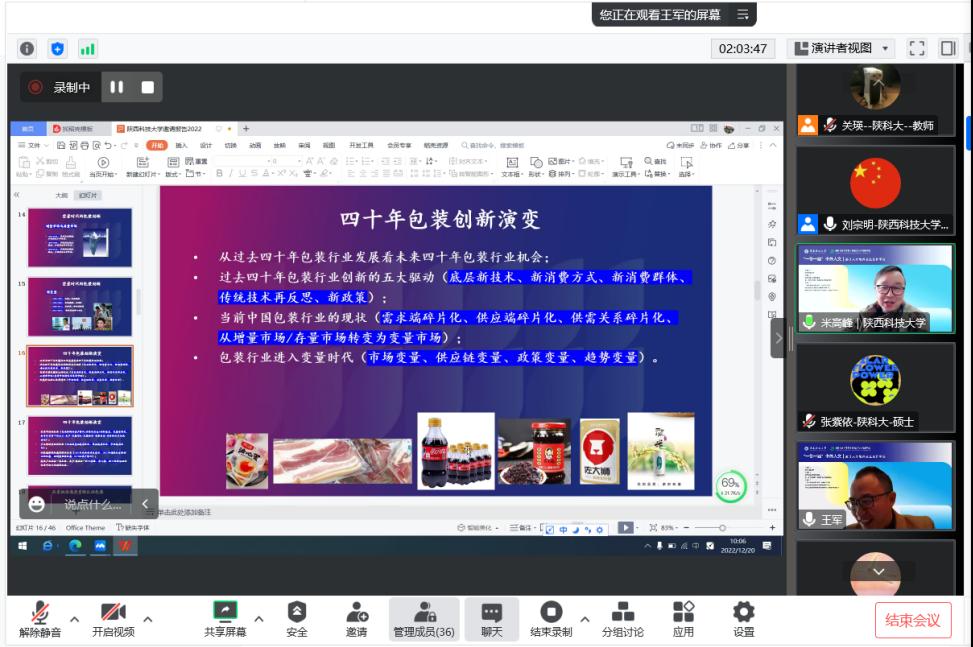 王軍教授還就Packaging Technology and Science雜志的論文選題、投稿要求、審稿規(guī)則、研究問題等與參會(huì)師生進(jìn)行深入交流,為師生們?cè)谖磥戆b設(shè)計(jì)領(lǐng)域的前沿問題、創(chuàng)新方法、評(píng)價(jià)體系等提供了諸多參考和啟發(fā)。
