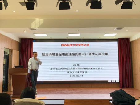 3月12日15點(diǎn),應(yīng)我校輕工科學(xué)與工程學(xué)院(柔性電子學(xué)院)、科技處及前沿院邀請,北京化工大學(xué)/鄭州大學(xué)呂超教授和北京化工大學(xué)田銳副教授分別做客我?!扒把乜茖W(xué)報(bào)告”和“未央導(dǎo)師論壇”,做了題為“聚集誘導(dǎo)發(fā)光表面活性劑的設(shè)計(jì)合成及其應(yīng)用”和“基于化學(xué)發(fā)光對聚合物降解過程的原位分析及路徑檢測”的學(xué)術(shù)報(bào)告。報(bào)告由輕工學(xué)院院長呂斌主持,學(xué)院相關(guān)專業(yè)教師、研究生參加了此次報(bào)告會(huì)。