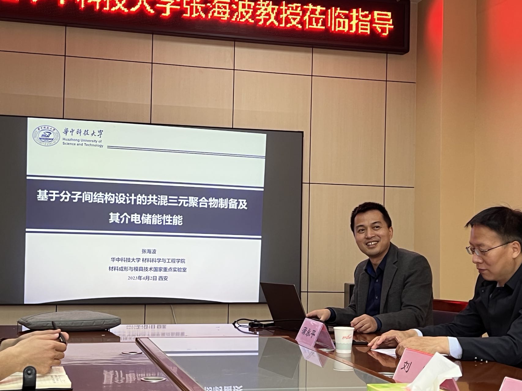 4月3日上午,應(yīng)我校材料科學(xué)與工程學(xué)院(文物保護(hù)科學(xué)與技術(shù)學(xué)院)、科技處及前沿院邀請,華中科技大學(xué)張海波教授做客我?!扒把乜茖W(xué)報(bào)告”,作了題為“基于分子間結(jié)構(gòu)設(shè)計(jì)的共混三元聚合物制備及其介電儲能性能”的學(xué)術(shù)報(bào)告。報(bào)告會由副校長蒲永平主持,材料學(xué)院副院長王卓及學(xué)院相關(guān)專業(yè)師生參加了此次報(bào)告會。