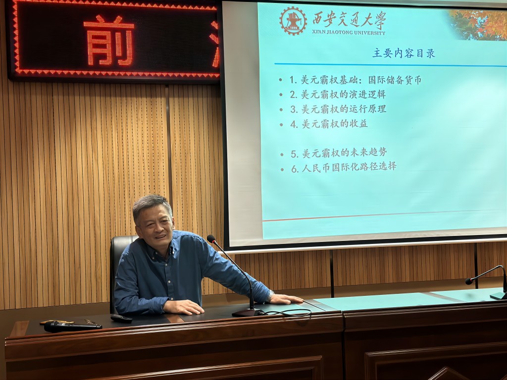 4月20日,受科技處、經(jīng)濟(jì)與管理學(xué)院邀請,西安交通大學(xué)經(jīng)濟(jì)與金融學(xué)院崔建軍教授做客我?!扒把乜茖W(xué)報(bào)告”,為我校師生帶來主題為“美元霸權(quán)演進(jìn)邏輯與未來趨勢”的學(xué)術(shù)報(bào)告。報(bào)告由經(jīng)管學(xué)院石乘齊副教授主持,經(jīng)管學(xué)院教師、研究生參加了此次報(bào)告。