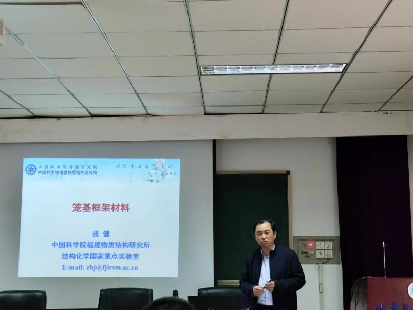 報告會上,張健簡要介紹了籠基框架材料的研究背景,從多個角度給大家科普了籠基框架材料,以及基于有機籠的晶態(tài)材料的發(fā)展歷程。內(nèi)容詳實,青年教師和學生們廣為受益。