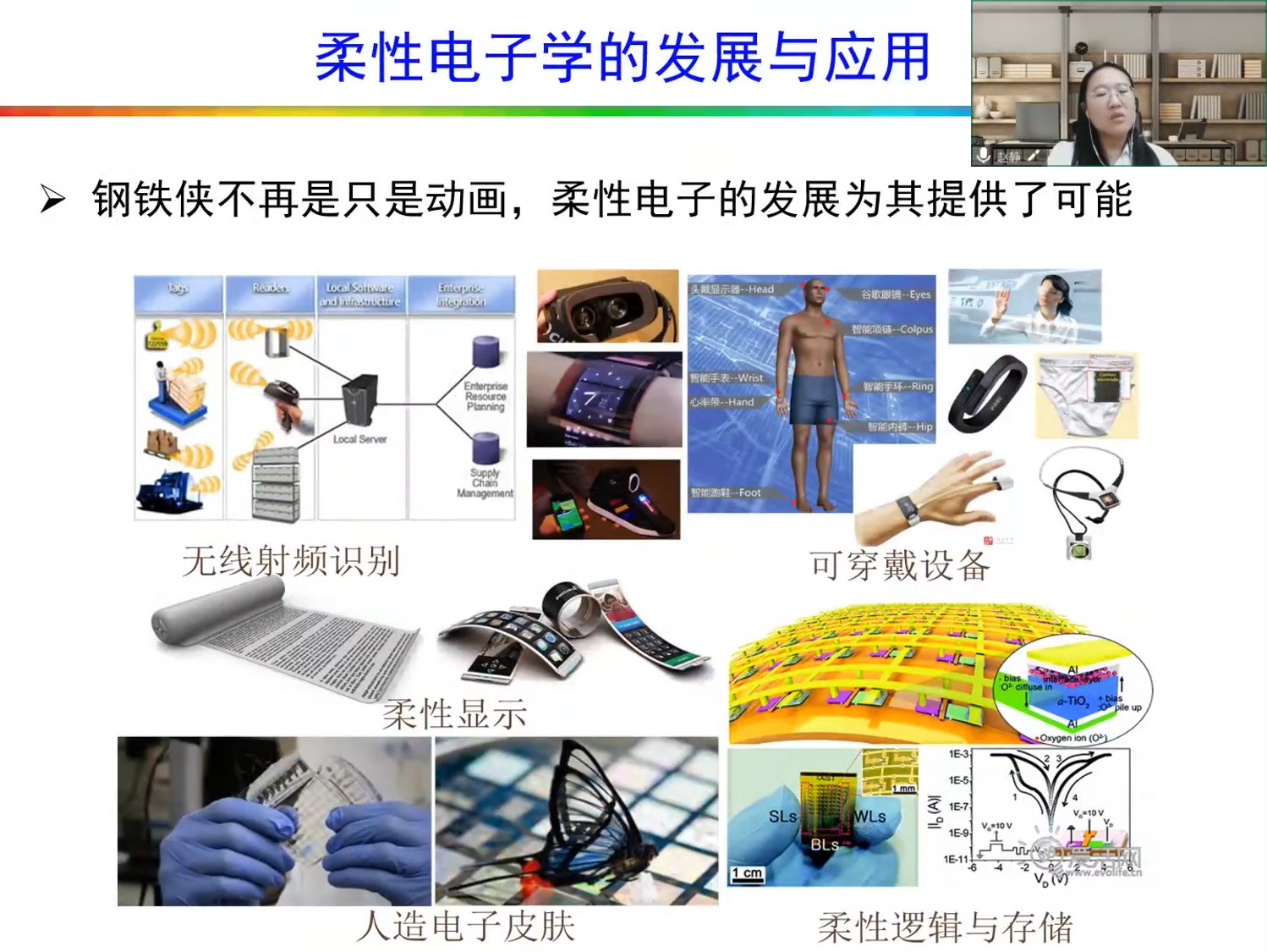 二維材料獨(dú)特的高表體比、優(yōu)異的電機(jī)械性能、良好的柔韌性和高透明度等特性為其在柔性電子學(xué)的廣泛應(yīng)用提供了可能。趙靜副教授以化學(xué)氣相沉積方法生長(zhǎng)的大面積石墨烯、二硫化鉬為基礎(chǔ),研究其柔性場(chǎng)效應(yīng)晶體管在不同濕度、應(yīng)變等條件下性能的變化,在此基礎(chǔ)上,通過(guò)改變晶體管部分結(jié)構(gòu)可以實(shí)現(xiàn)信號(hào)的存儲(chǔ),最終為獲得集傳感、信號(hào)傳輸、存儲(chǔ)于一體的多功能人造電子皮膚提供了基礎(chǔ)。