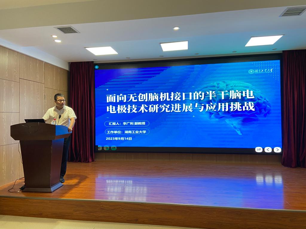 9月14日上午,應(yīng)我校輕工科學(xué)與工程學(xué)院(柔性電子學(xué)院)和研究生院邀請,湖南工業(yè)大學(xué)李廣利副教授做客我校“未央導(dǎo)師論壇”,作了題為“面向無創(chuàng)腦機(jī)接口的半干腦電電極研究進(jìn)展與應(yīng)用挑戰(zhàn)”的學(xué)術(shù)報(bào)告。學(xué)院相關(guān)專業(yè)教師、研究生參加了此次報(bào)告會。