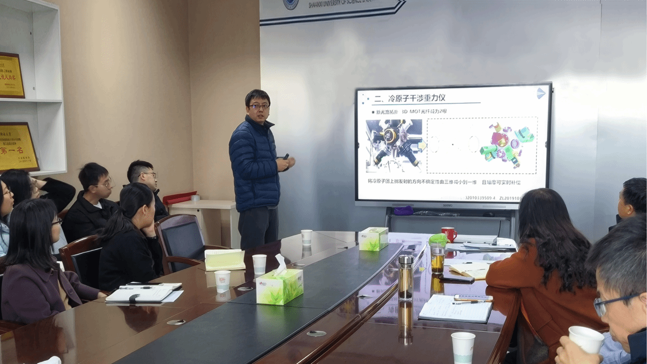 報(bào)告會(huì)中,賈森副研究員首先為大家介紹了原子的激光冷卻、原子態(tài)選擇和操縱方法、冷原子的干涉?zhèn)鞲性恚又鴱淖约褐鞒盅兄评湓痈缮娼^對(duì)重力儀這一課題出發(fā),為大家講解了冷原子干涉超精密測(cè)量的主要應(yīng)用,并就冷原子干涉的核心技術(shù)、關(guān)鍵器件、關(guān)鍵工藝以及冷原子干涉技術(shù)的重點(diǎn)難點(diǎn)問題結(jié)合自己的工作實(shí)際給出了解決方案。