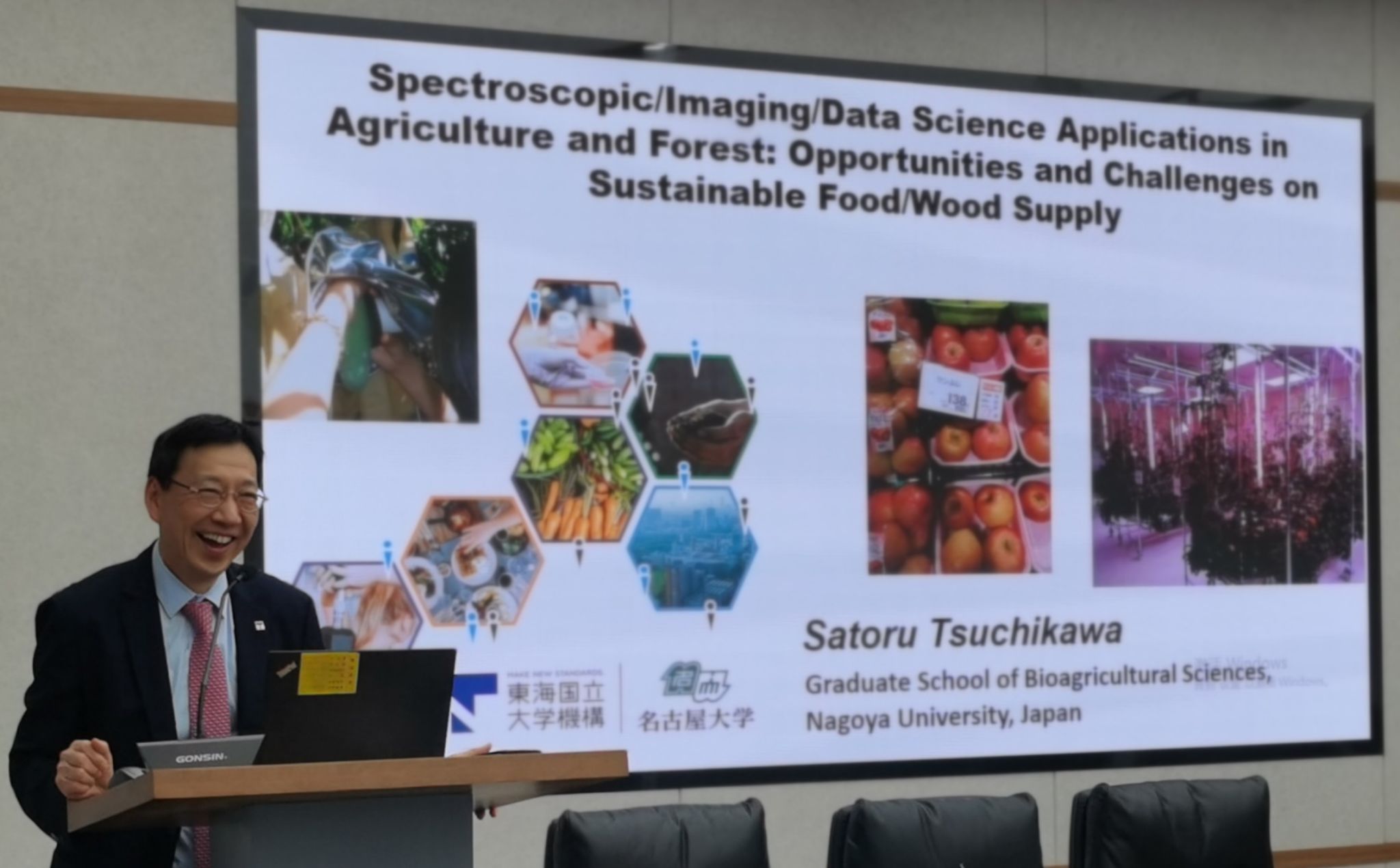 Satoru Tsuchikawa教授首先介紹了名古屋大學(xué)的歷史文化、發(fā)展現(xiàn)狀、科研進(jìn)展、專業(yè)設(shè)置等方面。接著從成像技術(shù)和深度學(xué)習(xí)在農(nóng)林方面的應(yīng)用情況、現(xiàn)代近紅外光譜(NIR)技術(shù)在果蔬、谷物和木材等品質(zhì)檢測的研究進(jìn)展、高光譜成像(HSI)技術(shù)在光譜和圖像數(shù)據(jù)融合方面的應(yīng)用案例等幾個方面介紹了領(lǐng)域內(nèi)的最新理論、方法、技術(shù)及應(yīng)用研究,并對光譜、成像和數(shù)據(jù)處理等方面的發(fā)展做出展望。最后介紹了團(tuán)隊(duì)合作和國際交流情況。