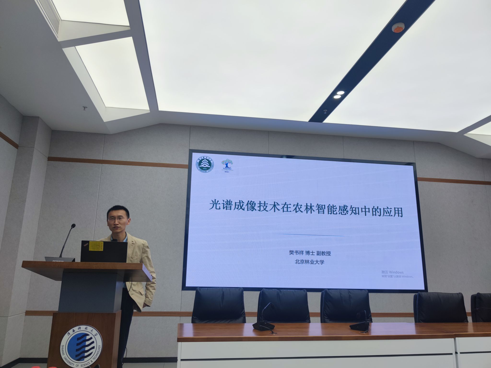 報告會上,樊書祥副教授首先介紹了光譜成像技術(shù)在農(nóng)林感知中的應(yīng)用,并以果蔬內(nèi)部品質(zhì)、果蔬外部缺陷、種子品質(zhì)以及木材品質(zhì)檢測為例,詳細(xì)講解了其檢測原理、模型及算法。其次分享了團(tuán)隊(duì)研發(fā)的便攜式檢測設(shè)備、在線檢測設(shè)備和分選設(shè)備等相關(guān)產(chǎn)品。最后展示了光譜成像檢測技術(shù)在農(nóng)林智能感知領(lǐng)域取得的顯著成果。