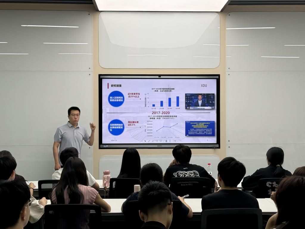 報(bào)告會(huì)上,鄭昱介紹了目前異常網(wǎng)絡(luò)流量檢測(cè)面臨的問(wèn)題與挑戰(zhàn),數(shù)字化時(shí)代網(wǎng)絡(luò)安全已成為信息技術(shù)領(lǐng)域的關(guān)鍵挑戰(zhàn)之一。隨著網(wǎng)絡(luò)攻擊的日益復(fù)雜和隱蔽,傳統(tǒng)的網(wǎng)絡(luò)安全措施已難以應(yīng)對(duì)新型的威脅。針對(duì)網(wǎng)絡(luò)流量檢測(cè)準(zhǔn)確性難以保障,加密網(wǎng)絡(luò)流量會(huì)增大流量的隱蔽性,異常網(wǎng)絡(luò)流量行為動(dòng)態(tài)變化、異常類(lèi)型和方式的不可預(yù)測(cè),異常數(shù)據(jù)難以收集等問(wèn)題,鄭老師團(tuán)隊(duì)分別從數(shù)據(jù)包結(jié)構(gòu)組成、二維流量圖像的低頻紋理特征和負(fù)樣本生成方法等方面進(jìn)行了探究,提出了三種異常流量有效檢測(cè)的方法——基于MLP-Mixer神經(jīng)網(wǎng)絡(luò)的多視圖多標(biāo)簽異常網(wǎng)絡(luò)流量分類(lèi)模型、基于流量圖像和多尺度低頻信息的異常流量檢測(cè)框架和基于normalizing flows的網(wǎng)絡(luò)流量異常檢測(cè)方法,為識(shí)別和預(yù)防潛在的網(wǎng)絡(luò)安全威脅的研究提供了重要支撐和參考依據(jù)。
