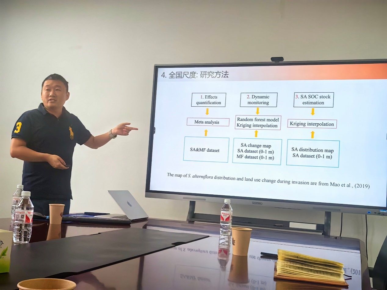 7月30日,應(yīng)我??萍继?、前沿院、環(huán)境科學(xué)與工程學(xué)院(碳中和科學(xué)與技術(shù)學(xué)院)邀請(qǐng),中國科學(xué)院華南植物園王法明研究員做客我?!扒把乜茖W(xué)報(bào)告”,并作了題為“互花米草入侵的藍(lán)碳碳匯效應(yīng)”的學(xué)術(shù)報(bào)告,報(bào)告會(huì)由環(huán)境學(xué)院院長郭軍康教授主持,相關(guān)教師及研究生參加了此次報(bào)告會(huì)。