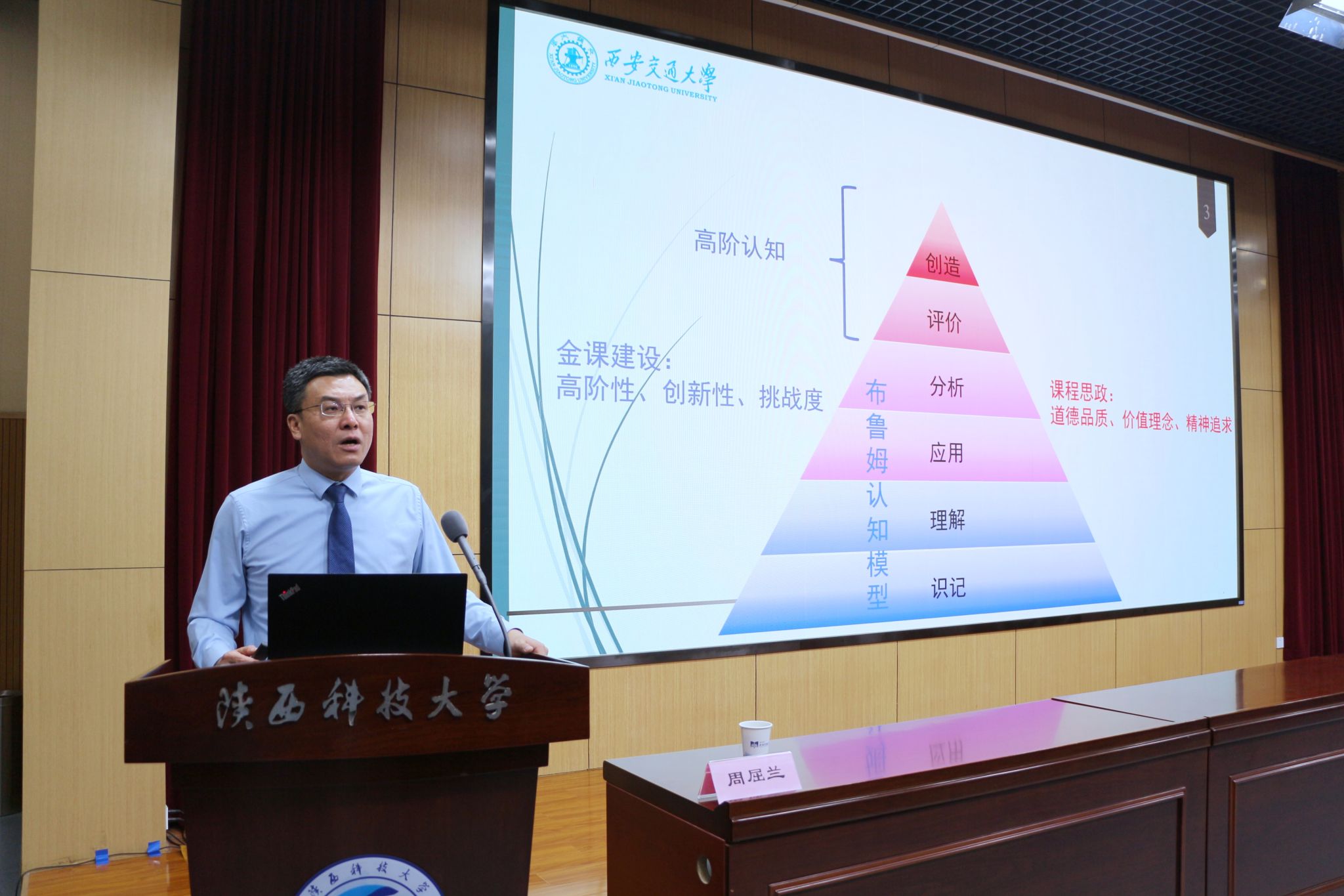 周教授以“教學(xué)創(chuàng)新”和“課程思政”兩個(gè)近年來教育教學(xué)中出現(xiàn)的高頻詞導(dǎo)入,通過布魯姆認(rèn)知模型對其內(nèi)在關(guān)聯(lián)性進(jìn)行闡釋,指出二者在高階認(rèn)知層面的內(nèi)在統(tǒng)一性,“教學(xué)創(chuàng)新是課程思政的核心基礎(chǔ),課程思政是教學(xué)創(chuàng)新的必然結(jié)果”。在結(jié)合能源與動(dòng)力工程專業(yè)教學(xué)實(shí)踐和理論研究基礎(chǔ)上,對照“高等學(xué)校課程思政實(shí)施綱要”及專業(yè)培訓(xùn)目標(biāo)、工程教育認(rèn)證標(biāo)準(zhǔn)中對課程思政的體現(xiàn),深度歸納解讀了課程思政實(shí)施的五個(gè)步驟“目標(biāo)重建,認(rèn)知提升”“內(nèi)容重構(gòu),學(xué)科交叉”“逆向設(shè)計(jì),全課覆蓋”“吸引學(xué)生,建立溝通”“合理考評,情感激勵(lì)”;分享了所教授課程《燃燒學(xué)》相關(guān)章節(jié)的教學(xué)實(shí)例、學(xué)生課堂作業(yè)及教學(xué)效果。凝練出課程思政的核心要義“課程思政的真正核心,是教師隊(duì)伍職業(yè)素養(yǎng)和敬業(yè)精神的提升”,總結(jié)出“為人師表,以身作則,才是最好的課程思政”。
