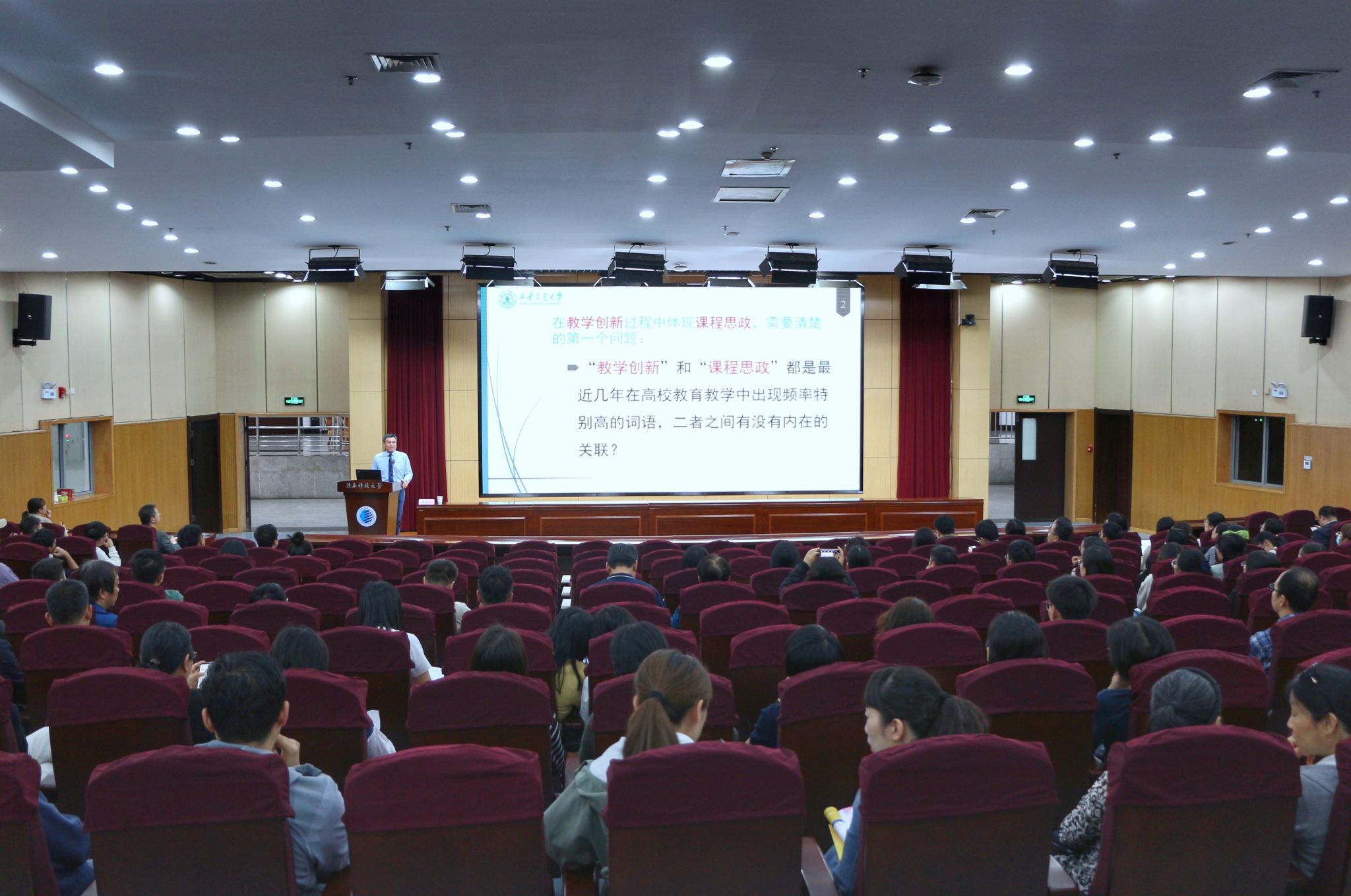 在提問環(huán)節(jié),周教授與參會(huì)教師進(jìn)行了深入交流互動(dòng),逐一解答了大家的疑問和困惑。周屈蘭教授的講解幫助老師明晰了課程思政的本質(zhì)內(nèi)涵,為教師在專業(yè)課程中對人文元素進(jìn)行融會(huì)貫通、提升學(xué)生的人文素養(yǎng)提供了優(yōu)秀范本,也為課程思政的深度實(shí)踐提供了方法策略和切實(shí)指導(dǎo),同時(shí)為探索發(fā)揮課程育人作用的途徑、提高人才培養(yǎng)質(zhì)量起到了積極的促進(jìn)作用。我校獲批校級及以上課程思政示范課程教學(xué)團(tuán)隊(duì)成員、近5年入職教師等200余人參加了此次報(bào)告會(huì)。