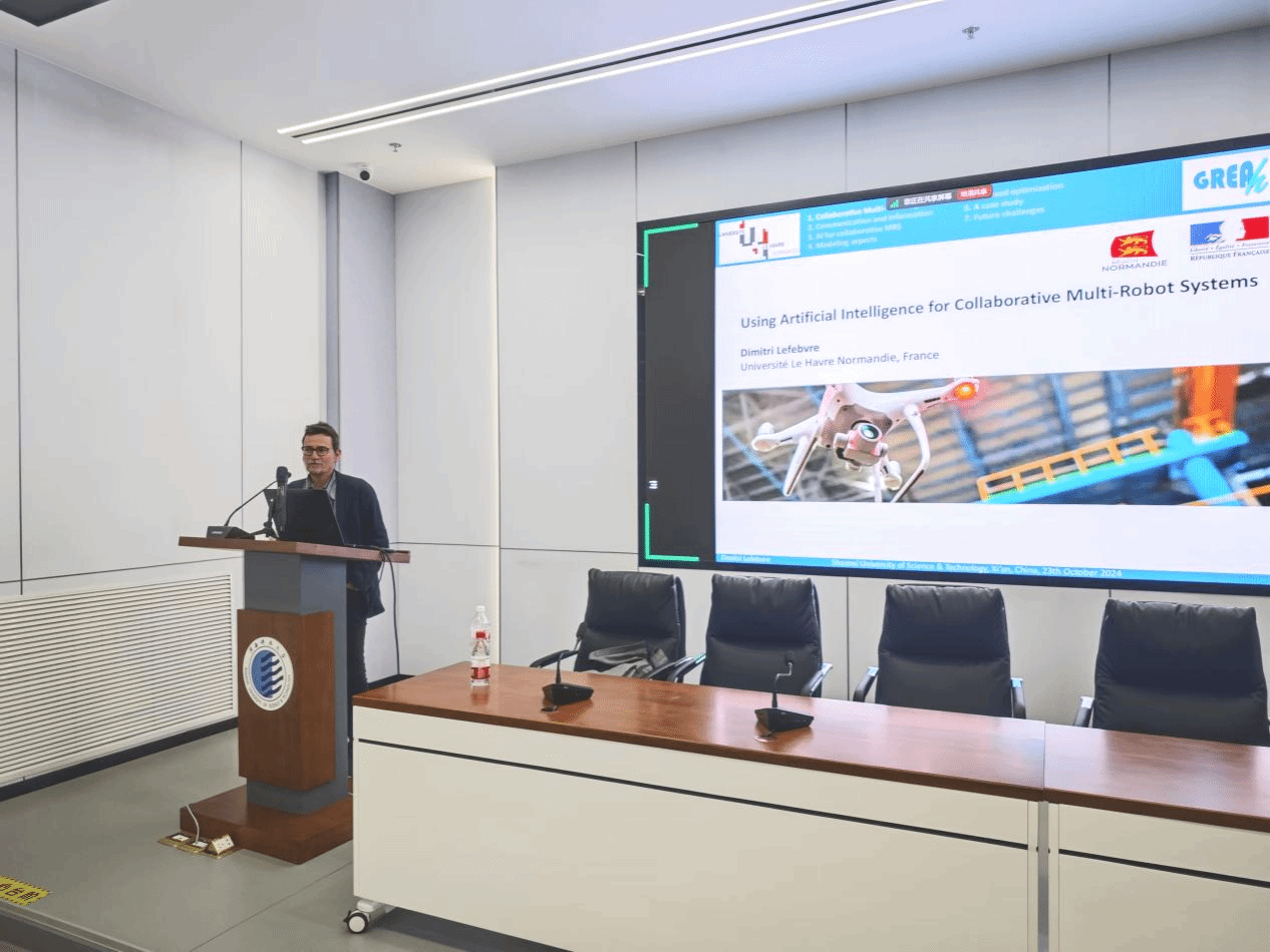 10月23日下午,應我校電氣與控制工程學院邀請,法國勒阿弗爾大學Dimitri Lefebvre(迪米特·列斐爾)教授作了題為“Using Artificial Intelligence for Collaborative Multi-Robot Systems(人工智能在協(xié)作式多機器人系統(tǒng)中的應用)”的學術報告。報告會由研究生院主辦,電氣與控制工程學院承辦,電控學院研究生導師及研究生參加了此次報告會,會議由電控學院副院長何舟主持。