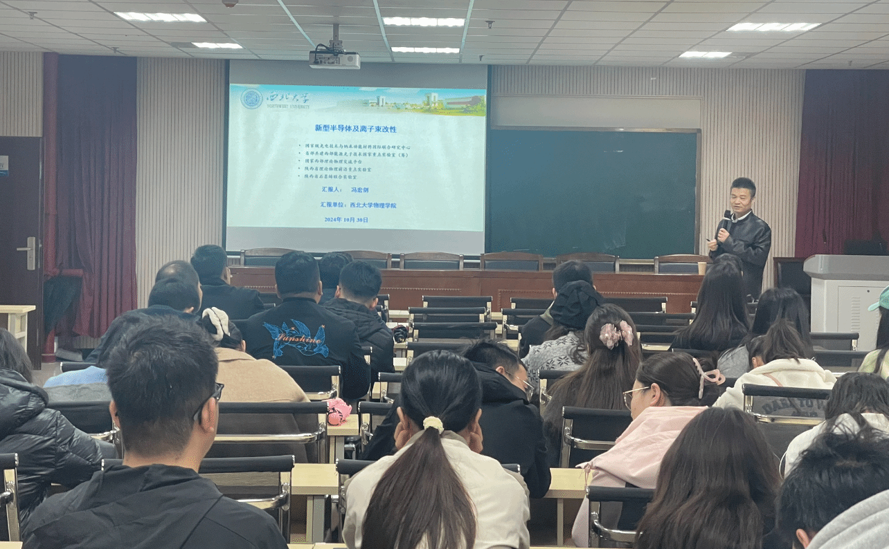 10月30日下午,應(yīng)我校物理與信息科學(xué)學(xué)院、科技處及前沿院邀請,西北大學(xué)馮宏劍教授做客我?!扒把乜茖W(xué)報告”,作了題為“載能離子束改性鈣鈦礦器件及與物質(zhì)相互作用”的學(xué)術(shù)報告。報告會由物理學(xué)院院長劉建科主持,學(xué)院相關(guān)專業(yè)師生近百人參加了此次報告會。