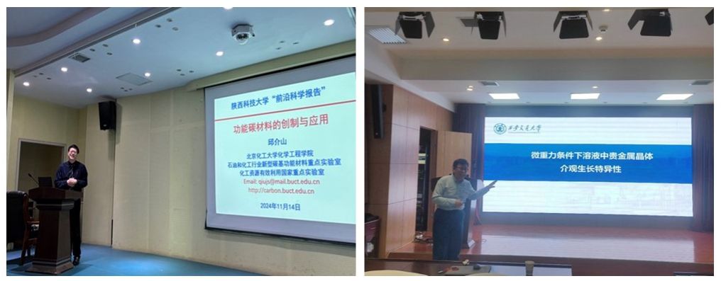 近日,為進(jìn)一步促進(jìn)學(xué)術(shù)交流和合作,拓寬師生的學(xué)術(shù)視野。應(yīng)我校輕工科學(xué)與工程學(xué)院(柔性電子學(xué)院)、科技處及前沿院邀請(qǐng),北京化工大學(xué)邱介山教授、西安交通大學(xué)楊志懋教授做客我?!扒把乜茖W(xué)報(bào)告”,分別作了題為“功能碳材料的創(chuàng)制與應(yīng)用”、“微重力條件下溶液中貴金屬晶體介觀生長(zhǎng)特異性”的學(xué)術(shù)報(bào)告。報(bào)告會(huì)由輕工科學(xué)與工程學(xué)院陳詠梅教授主持。輕工學(xué)院相關(guān)專(zhuān)業(yè)師生參與了本次報(bào)告會(huì)。