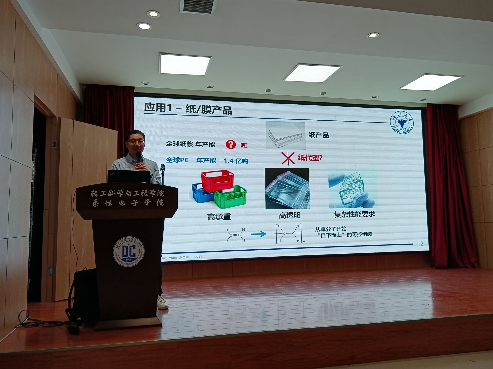 為促進優(yōu)秀科研成果的交流,拓寬學(xué)生的學(xué)術(shù)視野,創(chuàng)造學(xué)術(shù)交流機會,應(yīng)我校輕工科學(xué)與工程學(xué)院(柔性電子學(xué)院)、科技處及前沿院邀請,2024年12月5日上午,浙江大學(xué)楊軒研究員在我校輕工學(xué)院學(xué)術(shù)報告廳,做了題為“纖維素納米材料的綠色制備與應(yīng)用”的前沿科學(xué)報告。報告會由輕工學(xué)院張雷副教授主持,輕工學(xué)院相關(guān)師生參加了此次報告會。