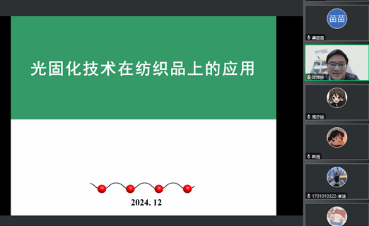 12月20日,應(yīng)輕工科學(xué)與工程學(xué)院(柔性電子學(xué)院)和研究生院邀請,江南大學(xué)智能紡織新材料研究國家重點實驗室陳坤林副教授做客我?!拔囱雽?dǎo)師論壇”,作了題為“光固化技術(shù)在紡織品上的應(yīng)用”的學(xué)術(shù)報告,輕工學(xué)院相關(guān)教師、研究生及本科生參加了本次報告會。