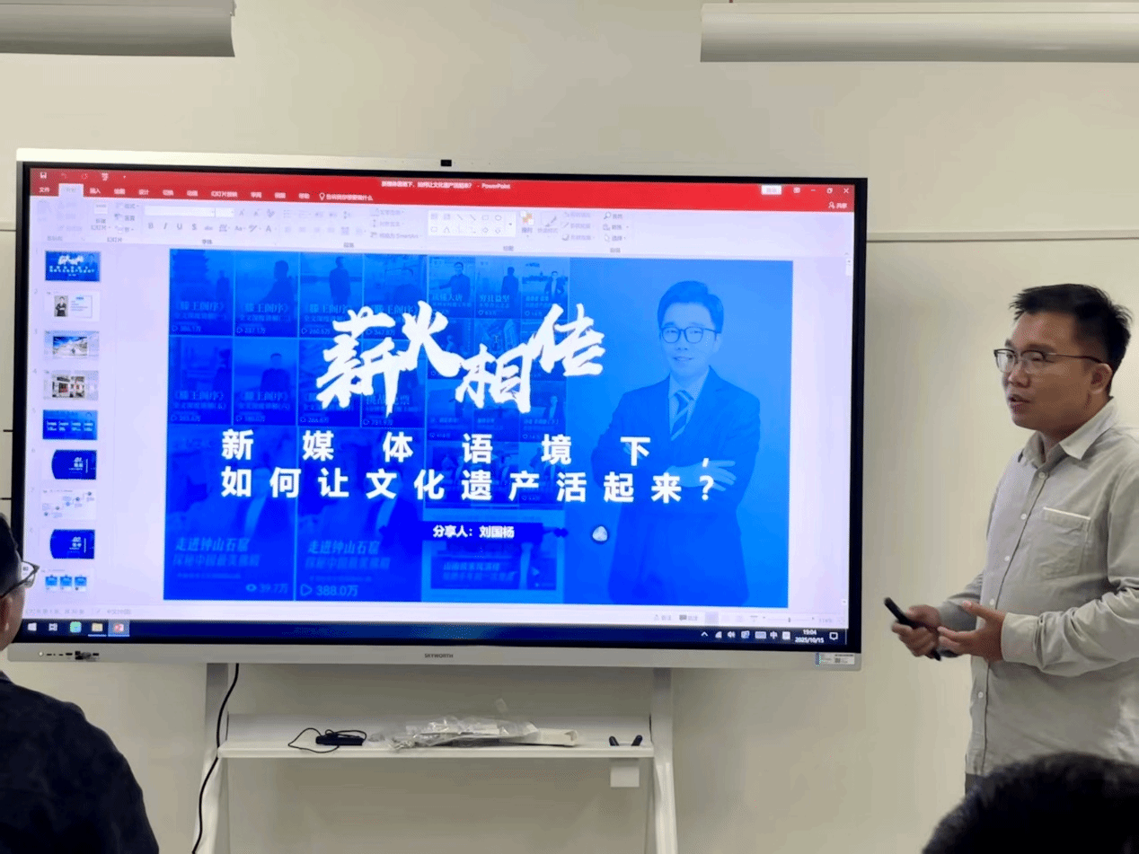 報告會上,劉國楊教授結(jié)合自身在文化傳播領(lǐng)域和自媒體領(lǐng)域的實踐和積累,從“扎根田野”“時空對話”“破壁表達”“跨界共創(chuàng)”四個維度出發(fā),對如何將文化遺產(chǎn)與新媒體相結(jié)合,推動文化遺產(chǎn)活化做了詳細講述,表示一定要對文化遺產(chǎn)懷有敬畏之心,善于挖掘文化遺產(chǎn)背后的故事,肩負起傳播優(yōu)秀傳統(tǒng)文化的時代使命。