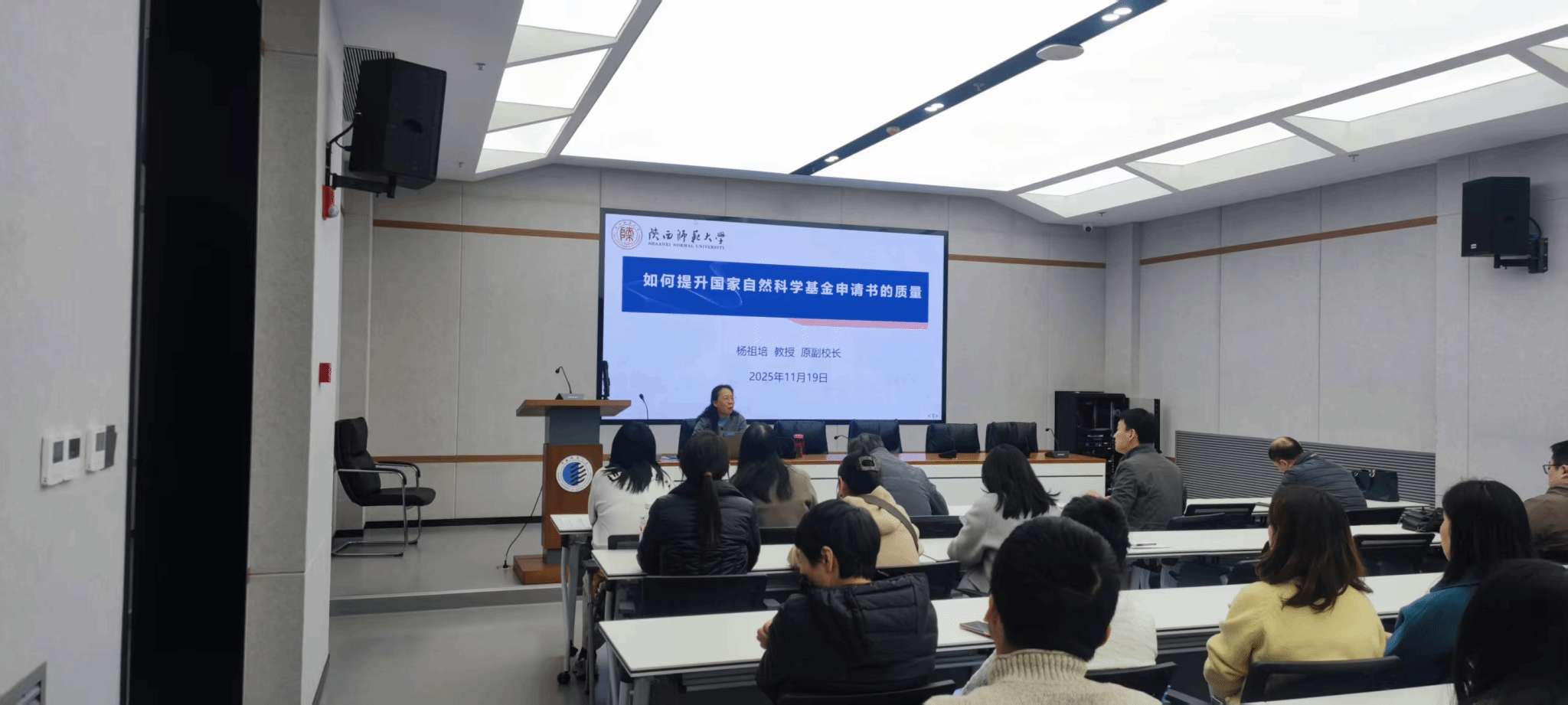 11月19日,應(yīng)科技處、前沿院及材料科學(xué)與工程學(xué)院(文物保護科學(xué)與技術(shù)學(xué)院)邀請,陜西師范大學(xué)楊祖培教授做客我?!扒把乜茖W(xué)報告”,在至誠至博204會議室作了題為“如何提升國家自然科學(xué)基金申請書的質(zhì)量”的專題報告。報告會由材料學(xué)院院長楊海波主持,學(xué)院全體教師參加并聆聽了此次報告。