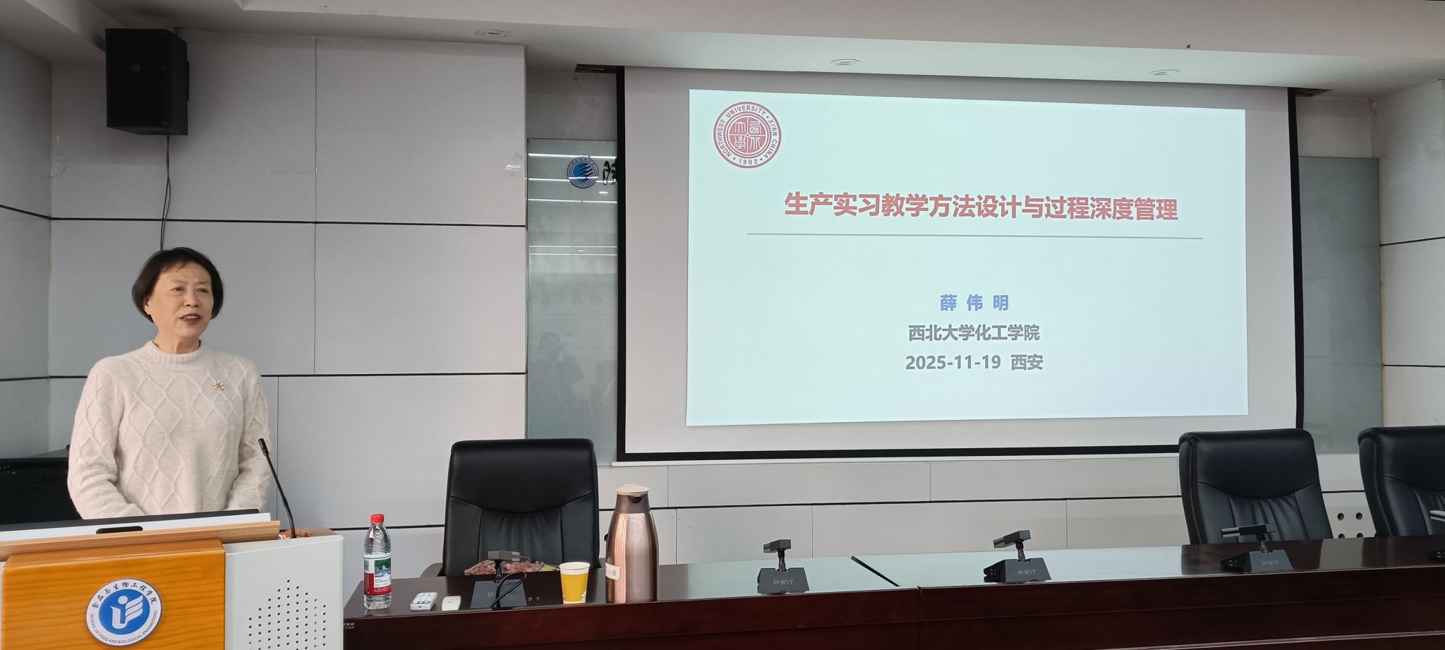 為創(chuàng)新人才培養(yǎng)模式,有效提升實(shí)踐教學(xué)管理水平,11月19日下午,教務(wù)處聯(lián)合食品科學(xué)與工程學(xué)院特邀西北大學(xué)薛偉明教授做客我?!敖逃虒W(xué)論壇”,在實(shí)驗(yàn)樓1C220學(xué)術(shù)報告廳作題為“生產(chǎn)實(shí)習(xí)教學(xué)方法設(shè)計(jì)與過程深度管理”的專題報告。報告會由食品學(xué)院副院長蒲華寅主持,學(xué)院全體教學(xué)管理人員、青年專任教師代表參加。